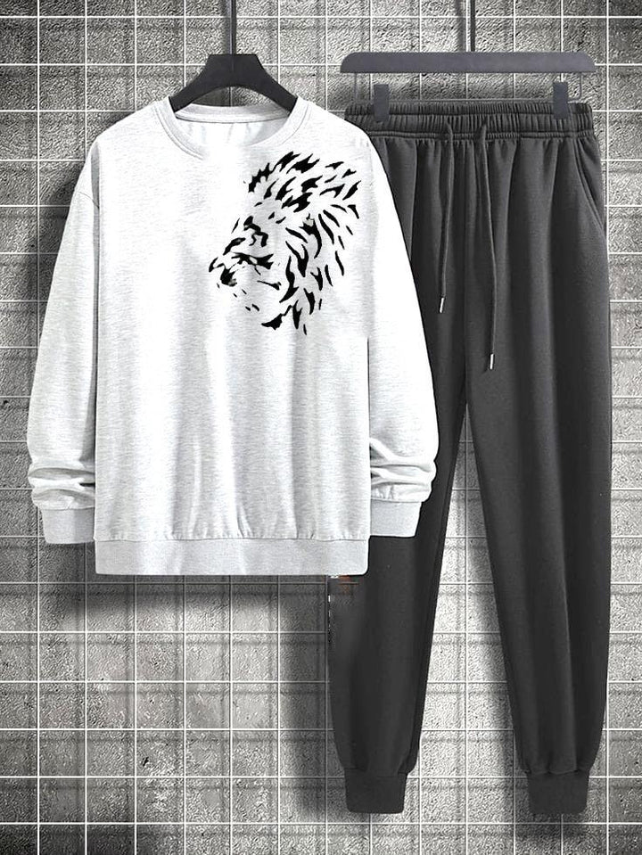 Fleece Printed Sweatshirt Track Suit (White)